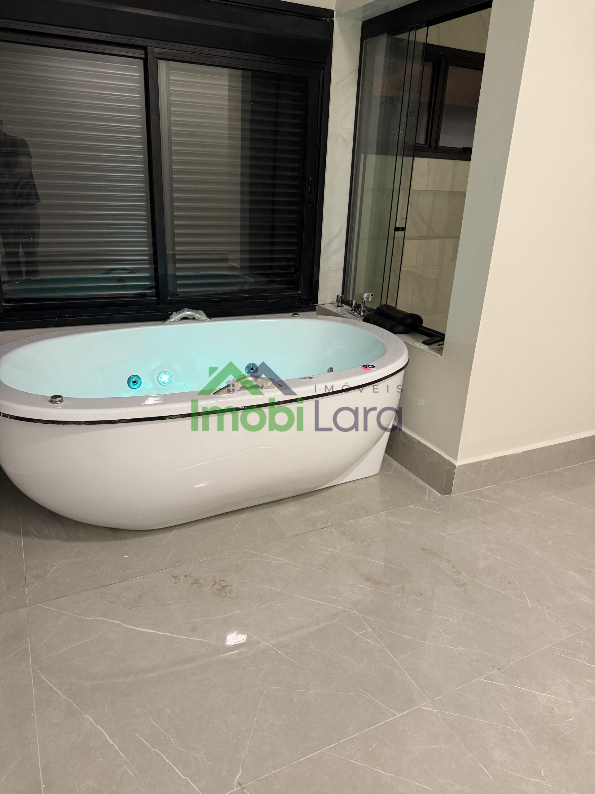 4 suítes, todas com Closet e a mega master com banheira de hidromassagem dupla, duas duchas e dois lavabos no banheiro.